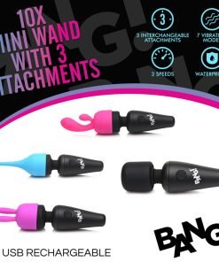 Try out this power packed wand with three different attachments! Each attachment slips onto the head of the wand and transfers the rumbling buzzes into the attachment for specific and different sensations! Try out the blue, pinpoint attachment to get to a specific spot on your nipples or clitoris. Use the purple rabbit ear attachment to buzz either side of your clitoris or nipples for a slightly less focused and intense buzz. Use the pink rabbit-style and G-spot targeting attachment for inner and outer pleasure! Or simply use the wand on its own to feel the full power of 3 speeds and 7 patterns of vibration! Made to be small and compact this little wand is perfect for overnight stays and is travel-friendly! The silky smooth silicone is premium quality and phthalate-free so you can enjoy body-safe and worry-free play. Use only with water-based lubricants for best results. Recharge using the USB cable provided. To clean, wash with warm water and mild soap then rinse and spray with a toy cleaner before wiping dry. Store in a cool, dark place separate from other silicone toys.
