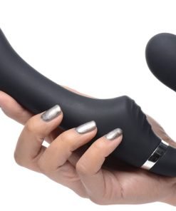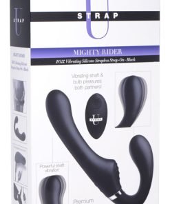 Equip yourself with this velvety, double ended strapless strap-on! Insert the vaginal bulb and hold up the Mighty Riders phallic shaft without a harness so you can peg and penetrate in complete freedom. Featuring powerful vibration, a waterproof build, and a wireless remote controller for the ultimate hassle free strap on experience!