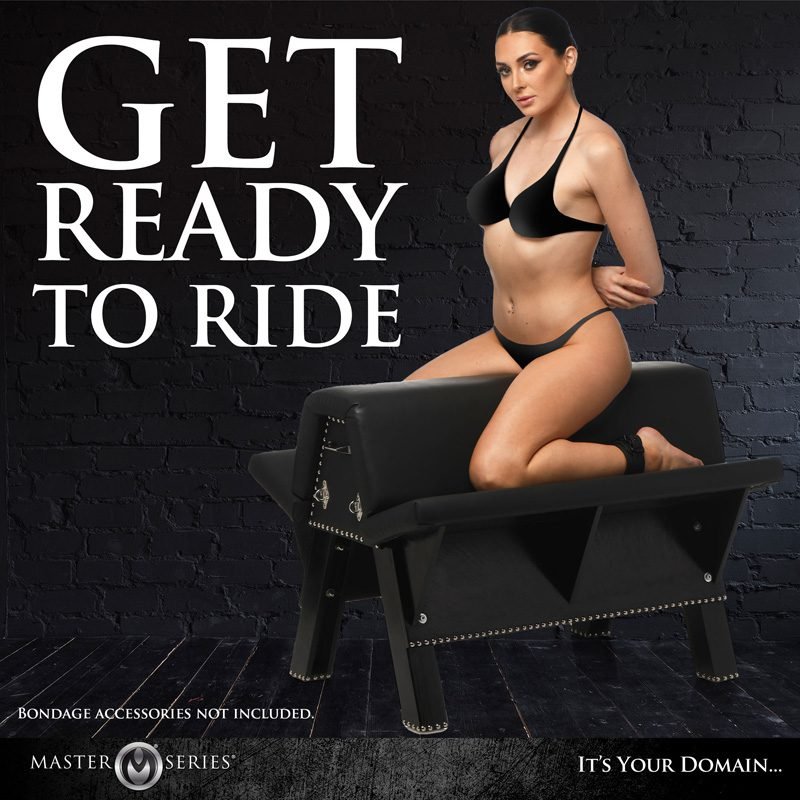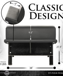 Transform your space by adding a classic bondage bench as the centerpiece of your pleasure. The classic design and smooth, black, vegan friendly leather with bold metal accents stand out and invite you to give in to your darker desires. The smooth faux leather feels divine against bare skin as you indulge in devious play with your partner! Restrain them to the bench with cuffs that attach to any of the 6 attachment points. Tease and torment your submissive to your heart’s delight by introducing different impact toys and play! This sturdy, wood and metal bench can handle up to 660 lbs so you both can hop on and enjoy each other. The padded cushions make it comfortable for you both to kneel, straddle or sit for sexy scenes! After play, simply wipe it clean until next time. All metal is nickel-free for sensitive skin.