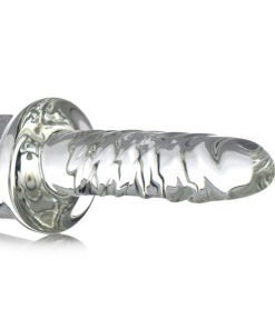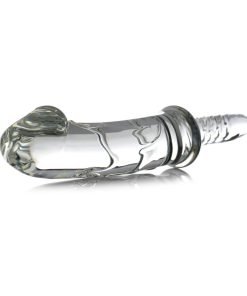 With a flared cock head and veiny shaft, this sparkling glass thruster is as pleasing to the eye as it is to the rest of your body! The cock head comes to a moderate point, to help with insertion. The ribbed handle makes for an easy grip, or you can even turn it around for a smaller insertable! The non-porous nature of the slick glass makes it the perfect body safe material. Compatible with all lubes, the durable glass is perfect for anal or vaginal use. Since it is so easy to sterilize, it is also great for sharing! The durable and beautiful borosilicate glass makes it a thrilling option for temperature play, and is sure to last you for years and years!