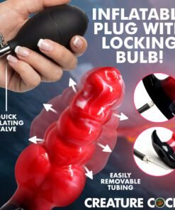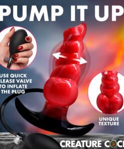 The Creature Cocks Blaze Inflatable Silicone Anal Plug does what no standard plug can. It inflates inside you, and it makes you feel every ridge harder as the girth increases. Deflated, the plug inserts at 2.6″ widest diameter and 6.1″ insertable length. Attach the hand pump and squeeze. The plug expands inside you, girth increasing with each pump until it reaches 3.2″ at full inflation and 7.4″ insertable. The quick-release valve releases pressure immediately or gradually. Tubing detaches from the base for untethered use.