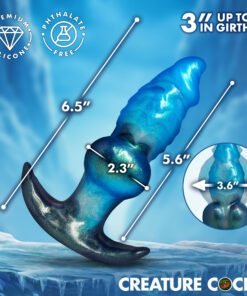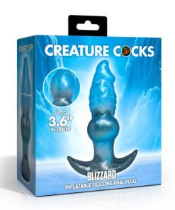 The Blizzard from Creature Cocks is an inflatable fantasy plug that goes in at 2.3″ and pumps up to 3.6″ while it is inside you. The 1″ tapered tip makes the initial insertion easy and the spiral-ridge texture on the upper shaft gives you something to feel on the way in that smooth inflatables just do not have. Once the crescent base is seated, squeeze the pump. The plug expands. The girth builds. The depth grows from 5.6″ to 7.8″ as it fills, so it gets wider and deeper at the same time. Stop wherever you want or take the full 3.6.