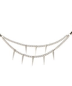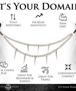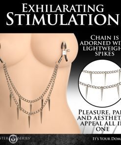 Pleasure, pain and aesthetic appeal all in one: these nipple clamps are the perfect way to adorn yourself and give an extra kinky twist to a classic toy. The metal chain has spikes that hang from double chains. As they are suspended across your chest, the clamps grip tightly to your sensitive nipples. With rubber tips to protect the delicate skin of the nipple and areola, the clamps are also easy to use and use a screw to adjust the pressure. Not only do the spiked chains look beautiful, they can also be used to gently tug at the nipple clamps and play with sensations further! After use, simply spray them with a toy cleaner and then let them dry. All metal is nickel-free.