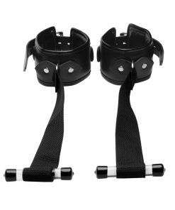Pin your lover against the door and take them standing up! These sturdy over the door restraints allow you to live out your spicy bondage fantasy while you screw your partner in an arousing new way. Slip the dowels over the top of the door to the other side, before shutting the door. Strap your play thing into the comfortably padded cuffs. They adjust to fit most sizes and the buckles are even lockable so that you know your lover is securely trapped until you are finished playing with them. Turn your door into bondage furniture with no assembly required.