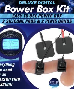 Electrify your sex life with this shockingly easy to use and pleasure-packed Power Box kit! Included in the kit is 1 power box, 2 penis bands, 2 silicone pads, and 2 leads. Use the penis bands and strap your rod in so it can electrify your shaft! Place the sticky, silicone pads anywhere below the beltline to add even more intensity to your experience! With this Zeus e-stim power box, you have 8 preset e-stim modes and 15 e-stim intensity levels! Explore all 8 modes including Acupuncture, Manipulation, Immunotherapy, Stroke, Weight Reducing, Massage, Cupping and Scraping. Originally taken from the world of healthcare these modes mix massage, bodywork and stimulation to give you unique, pleasurable sensations unlike any other you’ve experienced on a sexual level! All materials are phthalate-free and nickel-free so you can rest assured your new toy is body-safe. To clean, wipe the power box with a toy cleaner and a damp cloth. Pat dry and store components in a cool, dry location, away from direct sunlight and separated from other toys.