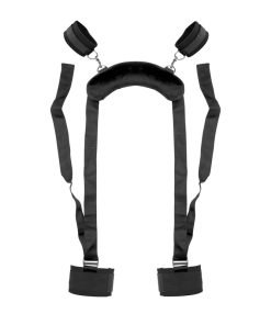 With the Spread Me Positioning Aid from Frisky, you can enjoy sexy playtime plus gentle and exciting restraint! The durable design features a cushioned neck supporting pillow and leg straps. Have a taste for a little bondage? Two D-rings attach comfortable adjustable cuffs by snap hooks, to hold their wrists back The adjustable leg strap design helps with cramping, as well as back support and helps with G-spot positioning. Now you can go deeper and hit all new spots for incredible new sensations for both of you! With this easy to use system, all you have to do is slip the pillow behind your neck , then secure your ankles with the Velcro cuffs. The Spread Me Positioning Aide is a fun way to make bedroom play easy and comfortable!