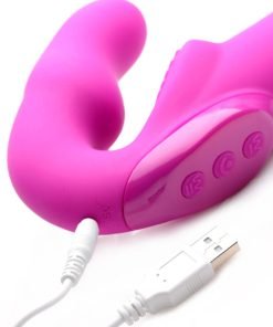 Ensure the satisfaction of both you and your lover with an elegant strapless strap-on that vibrates! This rechargeable pleasure tool features dual motors with independent control so that you can each take your pick of the 3 speeds and 5 functions of powerful internal thrumming. Both ends of this artfully designed double dildo are shaped for the ultimate in ecstasy: the bulb curves towards your G-spot to pinpoint pressure while you grind your clit against bold grooves. Meanwhile your partner will be treated to a smooth shaft with a protruding mushroom tip. It is even waterproof so that you can take your play into the shower, bath, pool, and more! Explore greater intimacy with a vibrating double-ended strapon dildo. Made of silky silicone, the Evoke is non-porous and phthalate-free. Clean with mild soap and warm water and avoid use with silicone lubricants.