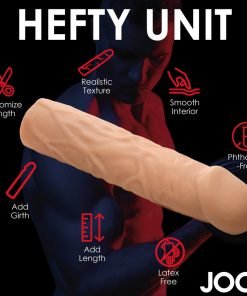 Wouldn’t you love to add a little length without going to extremes? With this extra long penis extension sleeve you can add inches in seconds! The body-safe, phthalate-free and latex-free TPE is super stretchy so it stretches and forms around the shaft so you can upgrade your dong for both yourself and your partner to enjoy! With a smooth head and thick, popping veins along the shaft, the realistic look and feel of this dong is designed to make the fantasy come to life! For a perfect fit, you can simply trim the base until you get the perfect length desired. Wash with warm water and mild soap after each use.