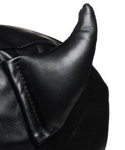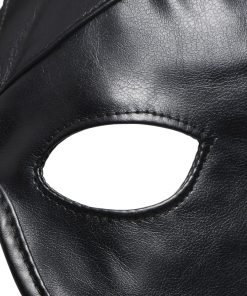 Indulge in your devious dungeon demon side with this bondage hood with horns! Made of PU leather, it is faux leather and vegan friendly! The hood shows off your eyes and mouth so you can change your appearance but still enjoy seeing, speaking and tasting whatever your desire! The inner lining is soft and makes wearing this hood pleasant for long periods of time. If you break a sweat, you’re in luck! This hood is machine washable, as well! Throw it in the laundry on a cool cycle and hang dry.