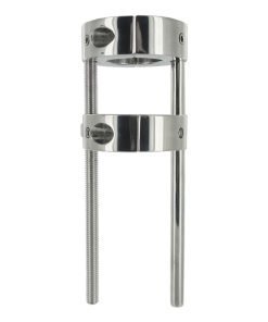 Maintain a pleasant tug on your balls or experience a tortuous extreme stretch with the fully adjustable Hells Bridge Ball Stretcher. With the two stainless steel rings side by side, place your balls through the openings and lock the rings closed with the included hex key. Now that both rings are secure around your sack, you can begin to rotate the nut on the side of the outer ring, causing the rings to draw farther apart. Take the stretch as far as you can stand it! For further torment, use the hex key to tighten down the internal screw points on each ring to introduce additional points of pressure to your stretching scenario. The Hells Bridge also doubles as a ball crusher, when you place only the inner ring around your scrotum and lower the outer ring gradually to achieve a relentless crush.
