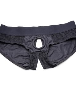 This lacey harness is crafted for functionality and comfort! The crotchless design keeps you ready for action when the mood to switch positions arises, allowing you and your lover to play with absolute freedom. The lingerie styling and universal O-ring let you get your strap-on in style and comfort!