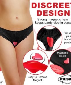 Indulge in secret fantasies with your partner! This Love Connection silicone panty vibe is the perfect, discreet toy for the both of you to enjoy. The vibe slips perfectly into place against your vulva and is held into place with a pretty, magnetic red heart. The ergonomic design of the vibe makes it comfortable to wear as it forms to all your curves and crevices perfectly. Wear it out with your partner and have some fun! The remote works from up to 19.7 feet away! Use the remote to buzz your partner and keep them wet and aroused! There are 3 speeds and 7 patterns to choose from, so choose your moment wisely! The toy is made out of premium quality silicone so it is body-safe, phthalate free and silky smooth. Use only with water-based lubricant. Both the remote and vibrator are USB rechargeable. To wash, use warm water and mild soap, then spray with a toy cleaner and pat dry.