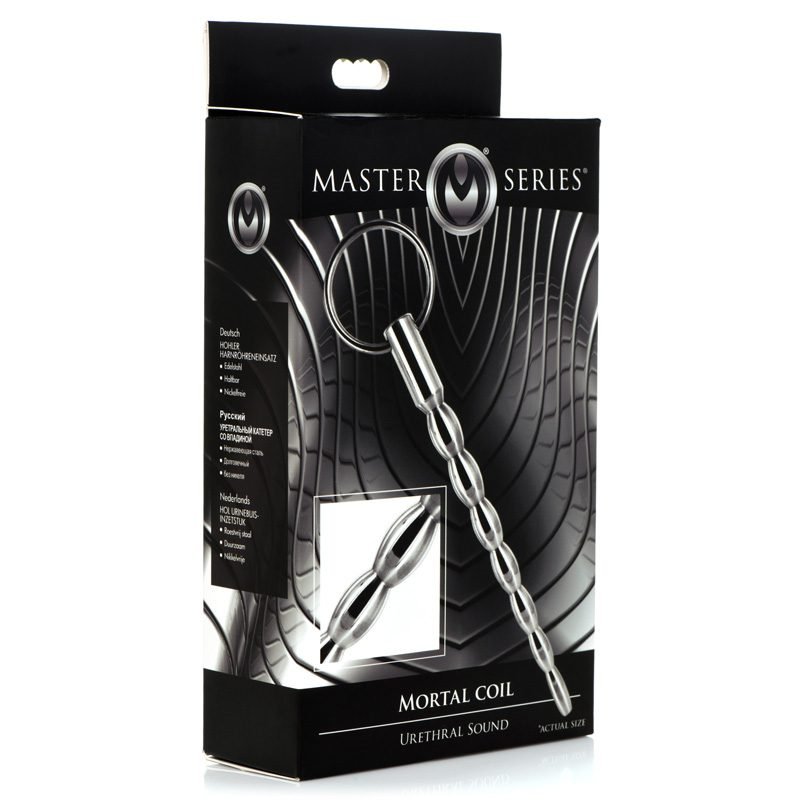 The Mortal Coil sound Master Series is made of brushed stainless steel and is designed to increase pleasure. Progressive swells allow for added stimulation. Long and smooth, this sound is perfectly suitable for targeted sensations. Take it to the next level with a little temperature play: the Mortal Coil can be warmed with warm water or cooled in the refrigerator. A thru-hole runs through the shaft and a ring pull is attached to the end for easy manipulation and retrieval.