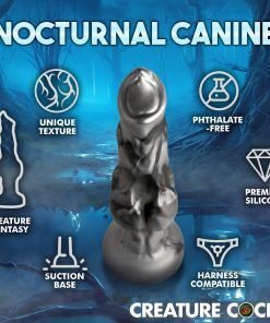 This silver and smoky black rod is iridescent and shines in the dim moonlight! The Night Prowler dong is from a beastly wolfdog that can smell your desire from miles away! The tapered tip makes it easy to insert. The veiny shaft is firm yet flexible, thick but squishy. Above the base are 4 ball-like knots to add extra stretch when you get it deep inside. The wide, flanged base makes it harness-compatible and gives it a strong, suction cup base for hands-free fun! Made out of premium, phthalate-free silicone, it has a firm core and soft, silky surface. Explore every sci-fi, fantasy, roleplay, or cosplay scene you want with this epic adult toy! Use only water-based lubricants for best results. After play is over, wash the dildo with warm water and soap and use a toy cleaner to spray clean. Wipe dry and store in a cool, dark place out of direct sunlight.