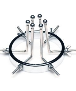 This stainless steel anal explorer is perfect for those into medical play who want to expand and stretch open their backdoor! Made out of strong, durable, non-porous, nickel-free steel, it’s compatible with all lubricant types and is nonporous. The Anal Explorer consists of one large ring with a diameter of 4.1 inches and 6 dilators that have smooth rods with small, round, balls on the ends of them. Insert it almost 3 inches deep and spread their hole wide open! The ring is wide enough for you to fit your fist through, as well! Each dilator rod can be adjusted individually using the wingnuts to tighten or loosen the position on the screw. Only the smooth steel will be pressing against the sensitive tissue of the anus while the spiraling screws are outside against the buttocks. To clean after use, rinse with warm water and mild soap or boil it in water. Then spray it with isopropyl alcohol and wipe clean.