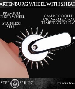 Test the limits of sensitivity play with the Odax Sensation Wheel from the Master Series. Run this premium spiked wheel across the skin and other highly treasured areas for an exciting prickle of pleasure. Made of stainless steel and deviously designed with a row of evenly spaced sharp pins that turn smoothly as it rolls across the flesh, the Odax is ideally designed for intense, exquisite pleasure. Take it to the next level with a little temperature play…the slick material of the Odax can be warmed or cooled for an extra spike of sensation.