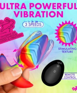 Why choose between rotation and vibration when you can have both? This compact powerhouse delivers swirling, pulsating sensations through 3 speeds and 7 patterns. This Rainbow Silicone Butt Plug adds a vibrant spin to your pleasure pyramid. Its signature dual-action design offers 21 ways to find your perfect rhythm.