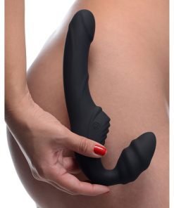 Slim Rider Ribbed Vibrating Silicone Strapless Strap On