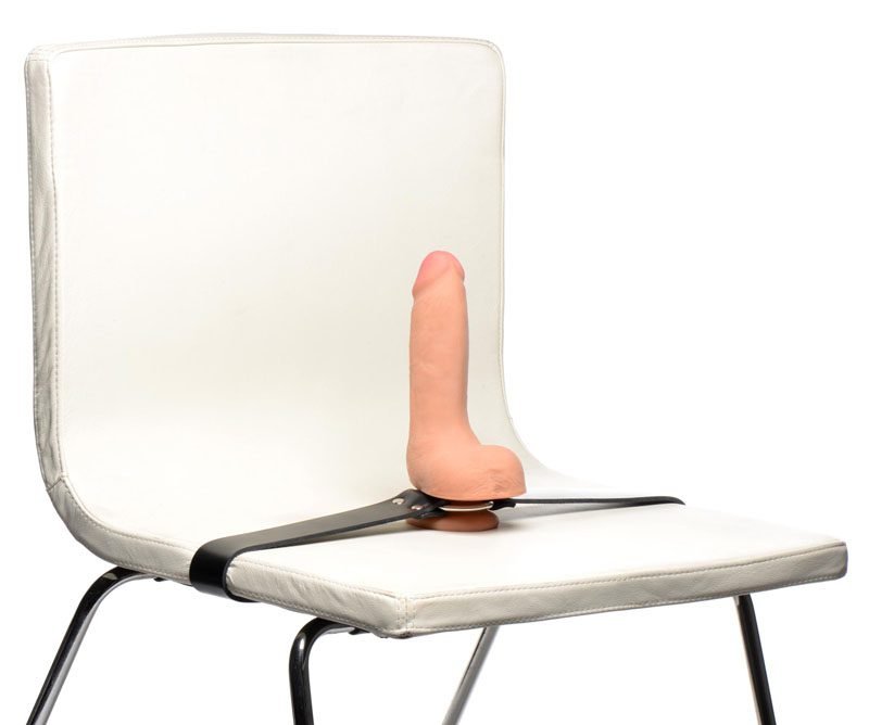 Play with your creativity and get the position you desire! With this strap harness, nearly anything is possible! Slip in a compatible dildo through the metal O-ring and adjust the straps as needed. This versatile strap can be placed on objects such as chairs or people with wide hips!