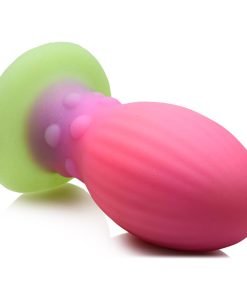 Expand your horizons beyond the known universe and get one of our alien xeno eggs by Creature Cocks! This pink, purple and green egg glows in the dark so you can have a radioactive looking alien egg! Or you can imagine that you are taking in a whole new kind of creature and their especially unique phallus! With ribbed sides and a bumpy neck you can enjoy extra stimulation. The tapered tip helps you insert it and the round, wide body gives you a satisfying fill! Use it vaginally and enjoy laying the egg as you push it out post-penetration! The egg is made from premium, phthalate-free silicone and is plush, silky smooth. Use only with water-based lubricants. After use, wash with warm water and mild soap then rinse and spray with a toy cleaner. Store in a cool, dark place. To make the toy glow, expose it to sunlight or a UV flashlight.
